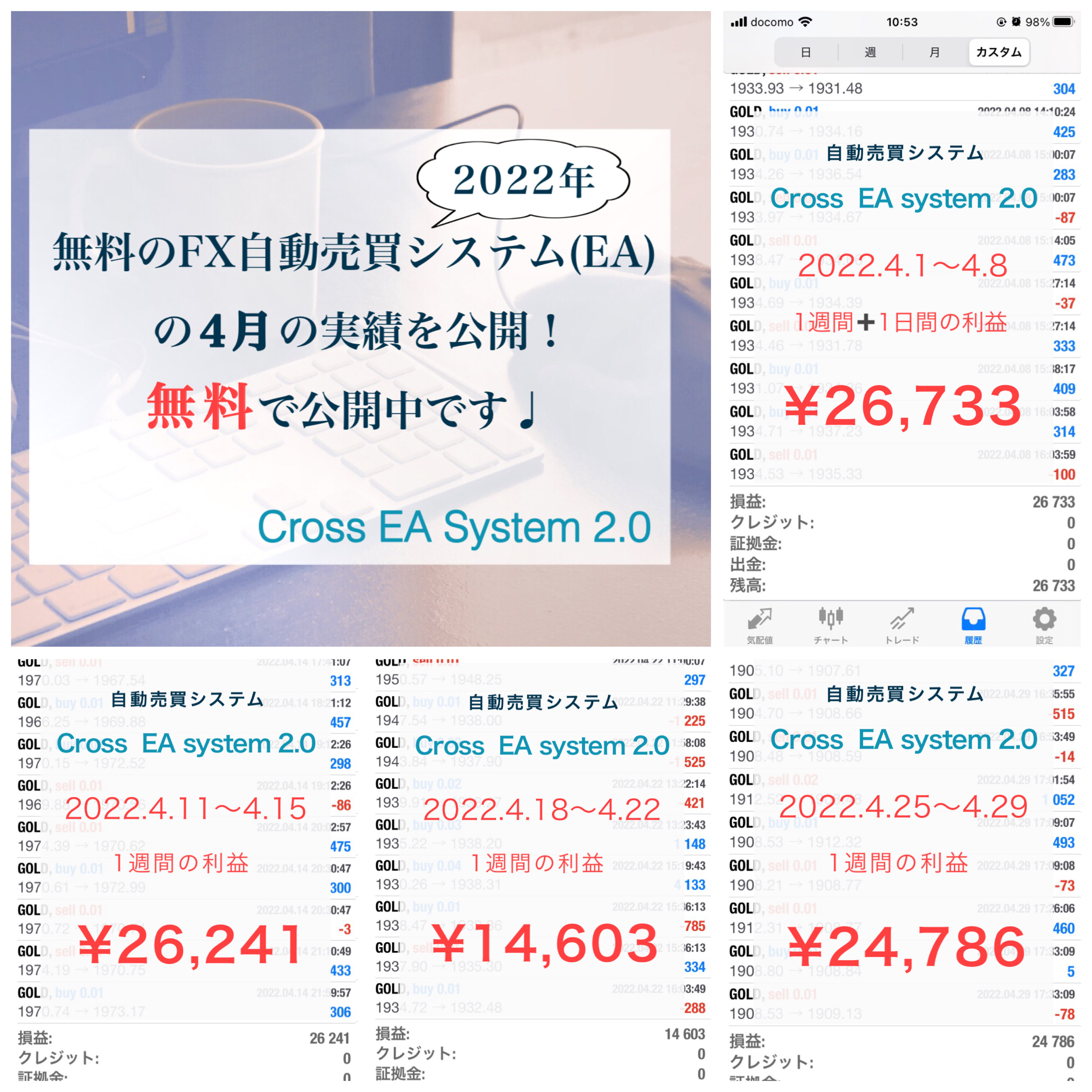 【新しいCross EA system 2.0 GOLD通貨】2021.10.3〜2022.6.1日現在のフォワード実績